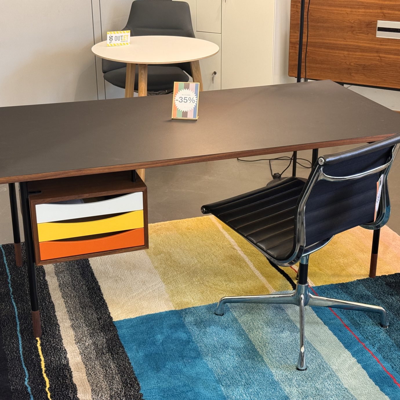 Lorsque Finn Juhl a établi son premier studio à l’adresse exclusive de 33 Nyhavn dans le centre de Copenhague en 1945, il a conçu un bureau simple avec des pieds en acier brûlés – un détail qui influencerait une grande partie de sa conception de meubles dans les années 1950. Finn Juhl a adapté ce concept simple à de nombreuses fins et dans de nombreuses variantes, et même après avoir délocalisé son atelier à 38 Sølvgade en 1957, les mêmes tables sont restées en usage.