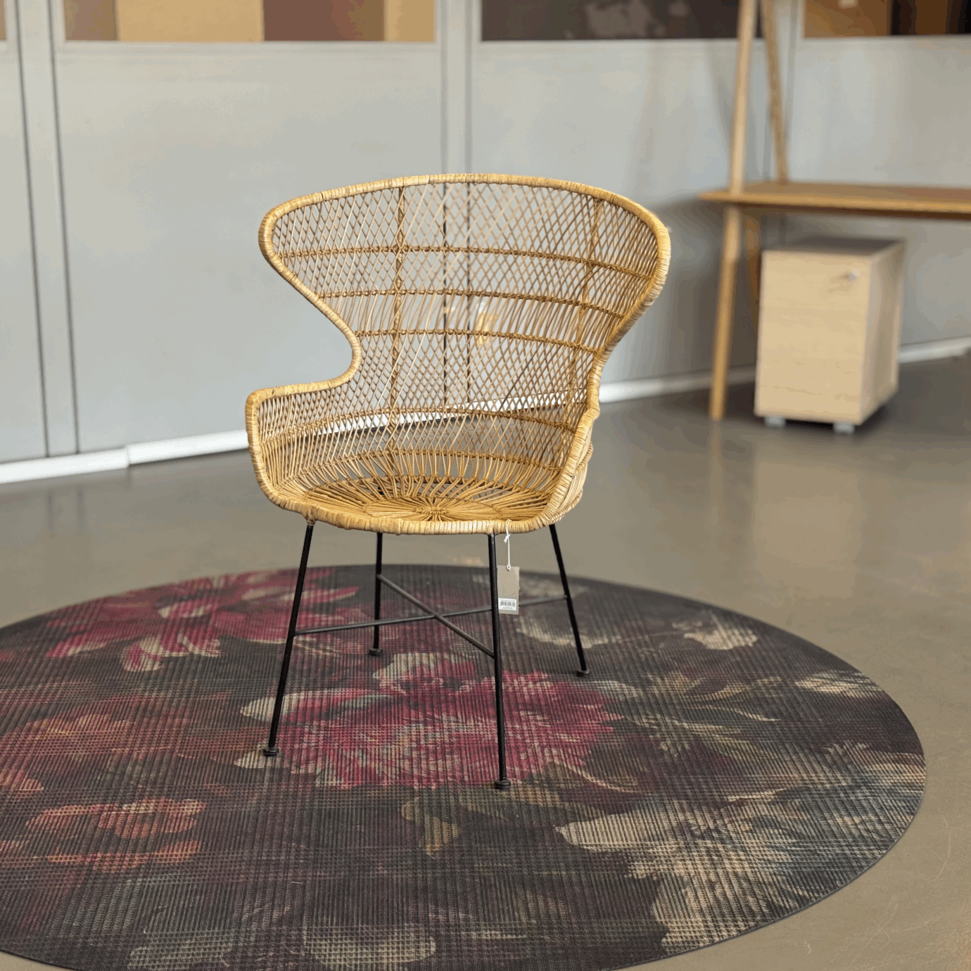 Le fauteuil Oudon de Bloomingville incarne un subtil équilibre entre artisanat naturel et design scandinave. Fabriqué en rotin au charme organique, il repose sur une structure élégante en fer noir qui lui confère solidité et contraste visuel.