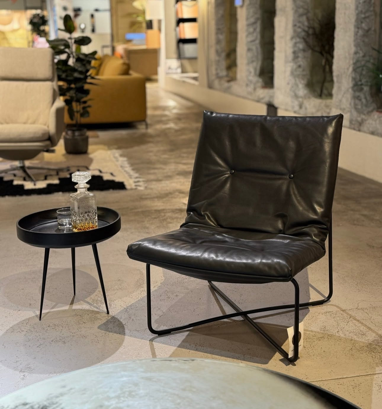 La structure est composée d’un tube unique en acier noir mat à motif entrecroisé qui met en valeur l’assise d’un confort extrême.