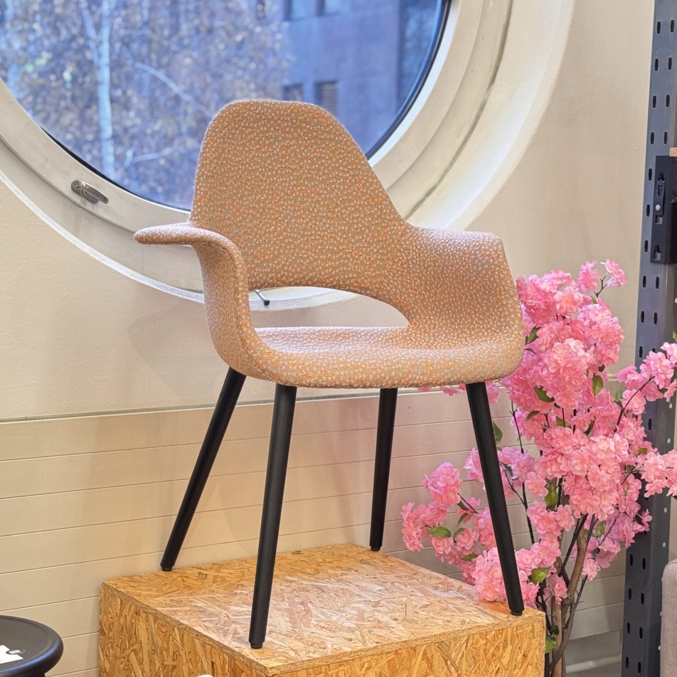 Cette pièce en édition spéciale est recouverte d’un luxueux tissu Kvadrat et dotée d’une base en frêne noir. Le design de la chaise Organic a été créé par Charles Eames et Eero Saarinen en 1940 dans le cadre de leur participation à un concours intitulé « Organic Design in Home Furnishings », organisé par le Museum of Modern Art de New York. Si tous les modèles de cette gamme sont extrêmement confortables, Organic Conference est particulièrement adaptée pour être utilisée autour d’une table, contrairement aux versions Organic Chair et Organic Highback.