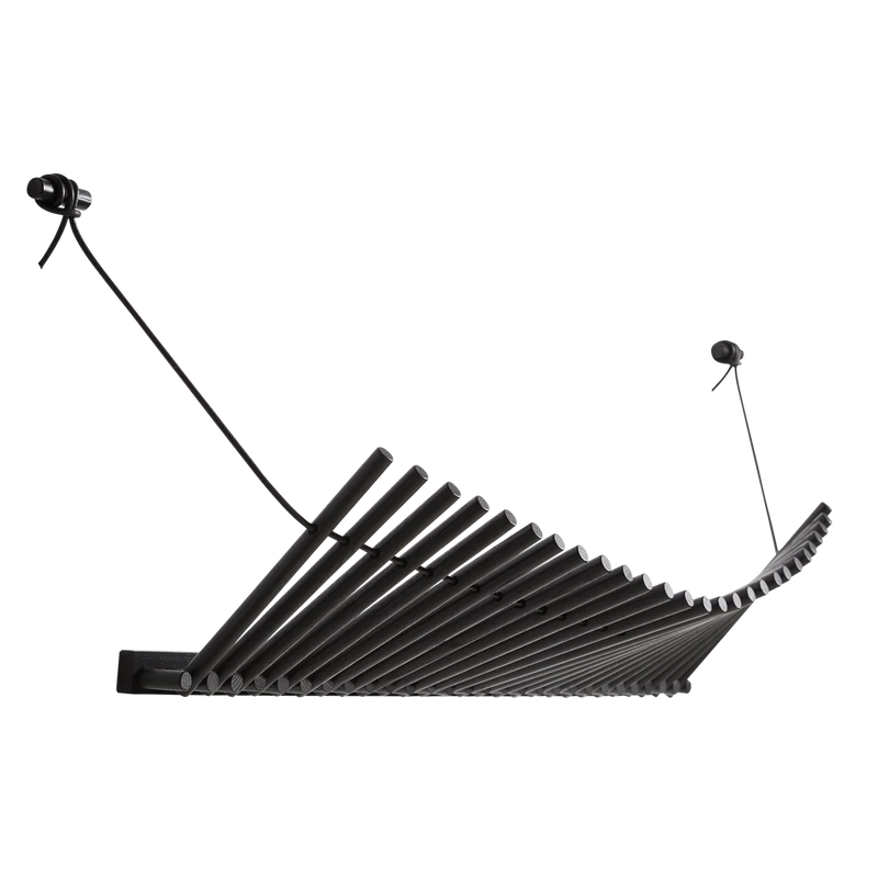 Knaegt est un portemanteau et une étagère à chapeaux en combinaison avec une esthétique élégante. La simple répétition de baguettes en bois traversées par un cordon en cuir rend le porte-manteau dynamique car la ligne créée par les baguettes change en fonction de ce qui est accroché au portant. Chaque bâton fonctionne comme un cintre. Le portemanteau est moderne dans son expression mais le cuir vif est ce qui donne son caractère à Knaegt.