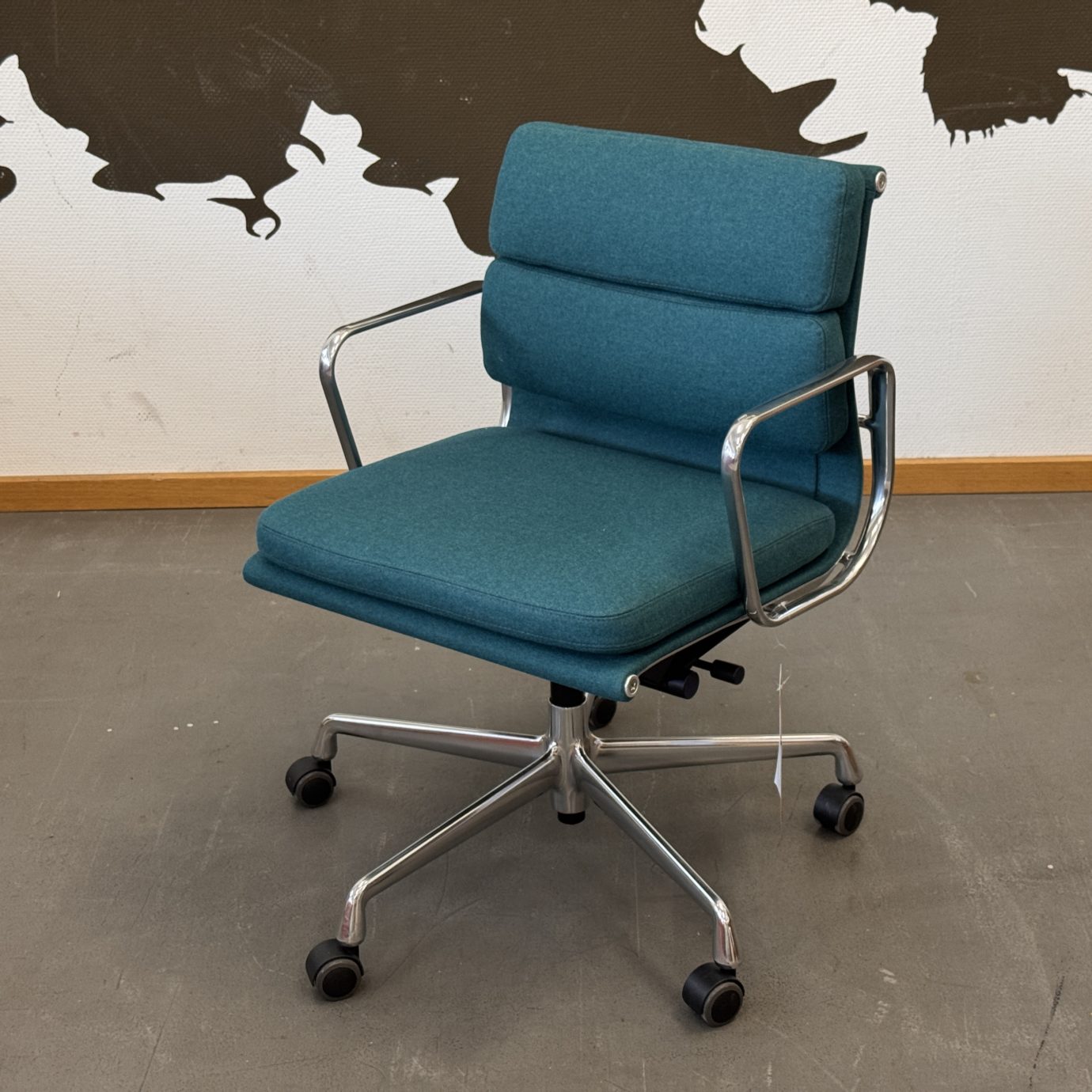 De par leur esthétique discrète, ils conviennent particulièrement aux espaces de direction. Le confort exceptionnel des sièges résulte de l’effet combiné du mécanisme d’inclinaison s’adaptant au poids de l’utilisateur et du rembourrage moelleux revêtu de tissu ou de cuir. Le modèle EA 219 se distingue du Soft Pad Chair EA 217 par son dossier plus haut.
