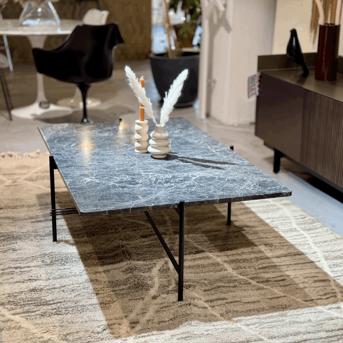 La table basse TS crée une esthétique sophistiquée et sculpturale pour toute pièce grâce à ses pieds fins et caractéristiques, ses détails subtilement croisés et son plateau massif contrastant.