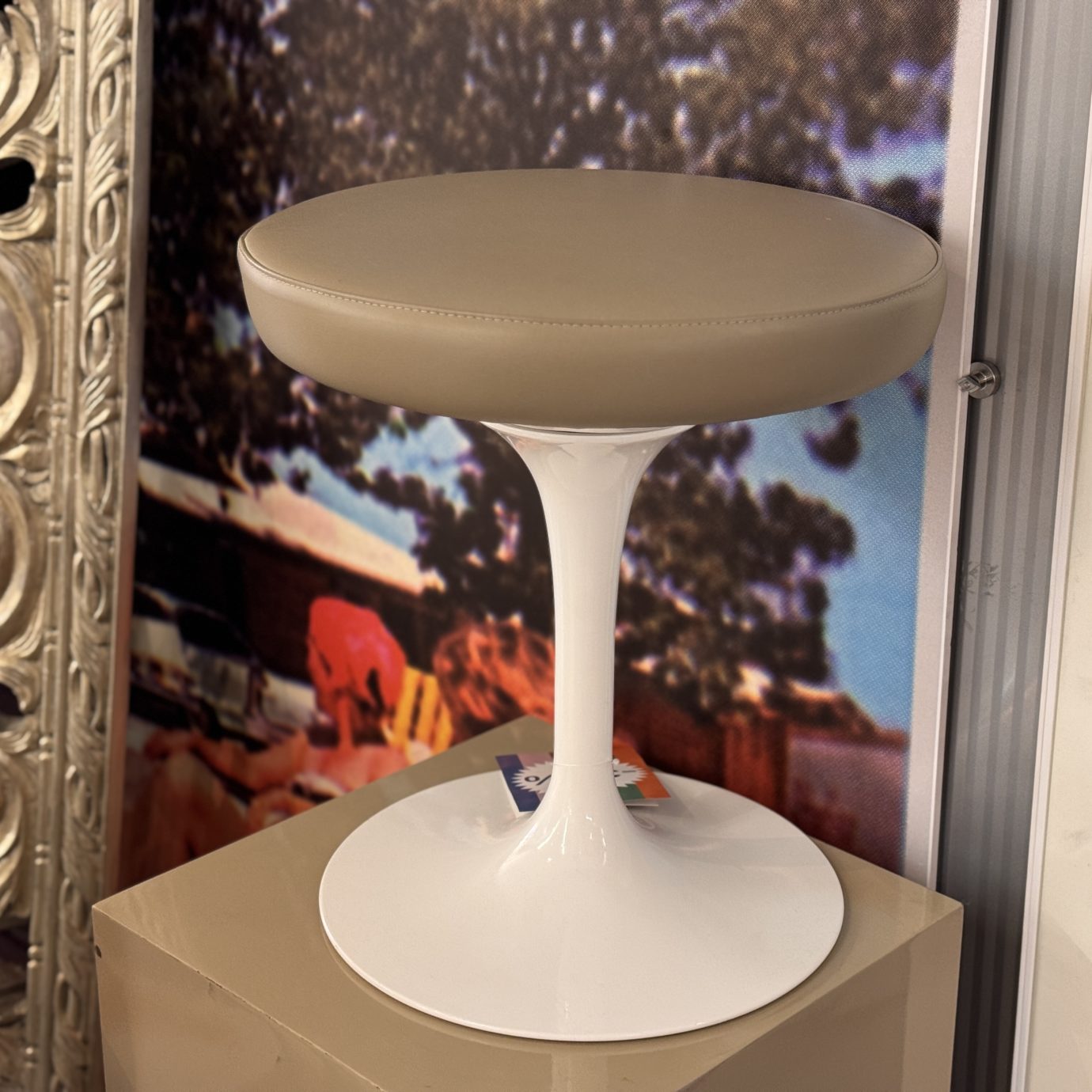 Tulipe est un tabouret créé en 1957. Il rompt avec la forme classique à quatre pieds, tout comme le matériau utilisé pour sa fabrication. À l'époque où le plastique faisait son apparition, il s'agissait d'une des créations les plus importantes du mobilier. Le logo Knoll Studio et la signature d'Eero Saarinen sont apposés sous le piètement.